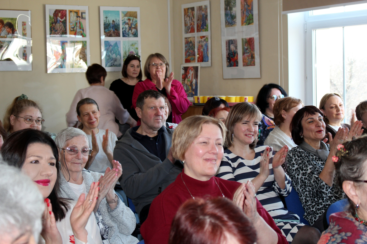 Прекрасная часть коллектива Калининградской областной научной библиотеки получила накануне первого весеннего праздника музыкально-поэтические и сладкие подарки